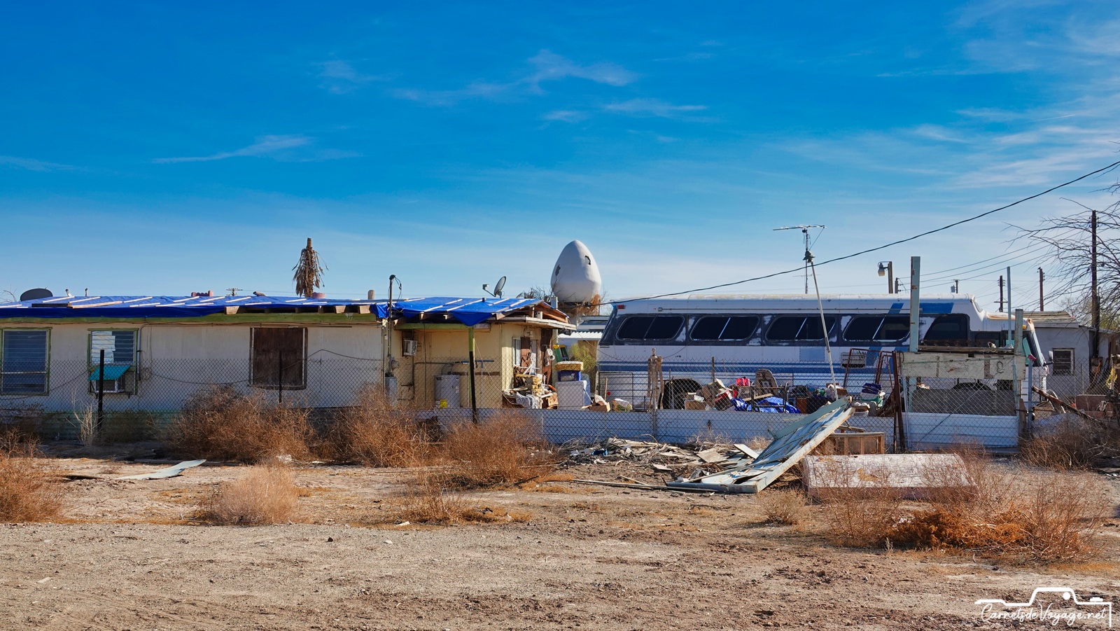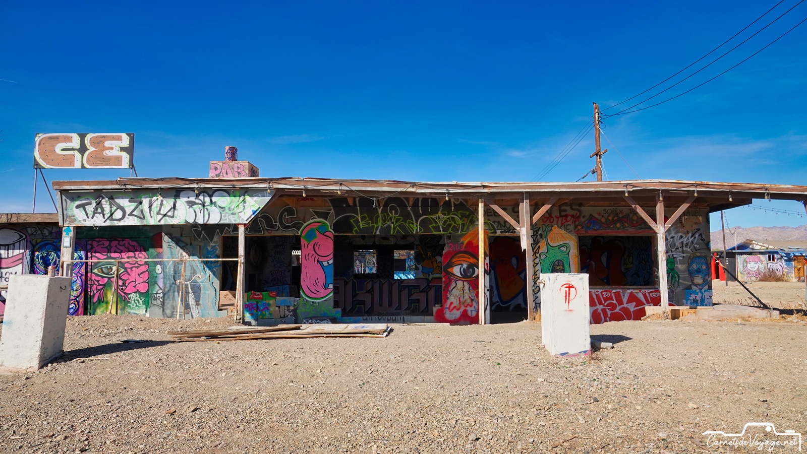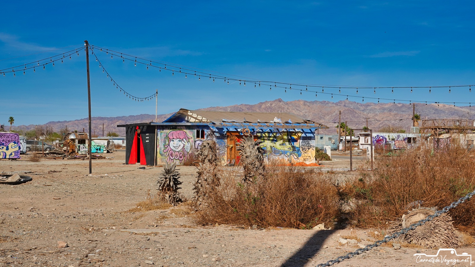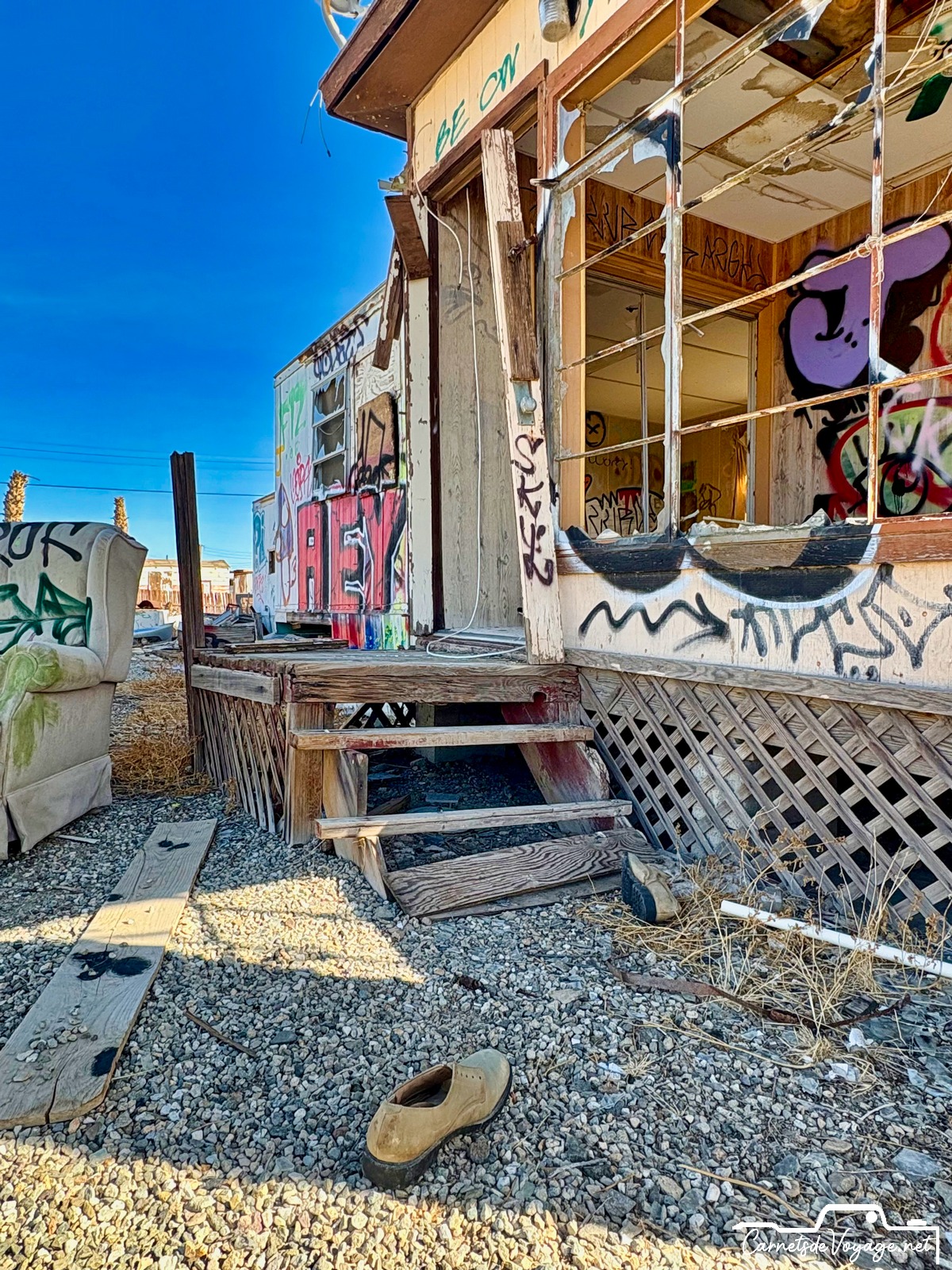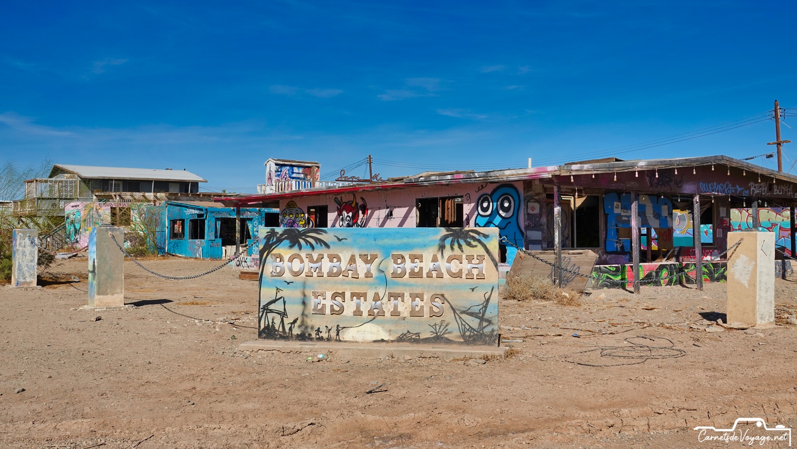 On trouve encore les traces de sa splendeur passée et des publicités qui vantent ses qualités. Bombay Beach était un des plus beaux coins de la Salton Sea. Difficile d’imaginer aujourd’hui qu’on se baignait et qu’on faisait du ski nautique ici !