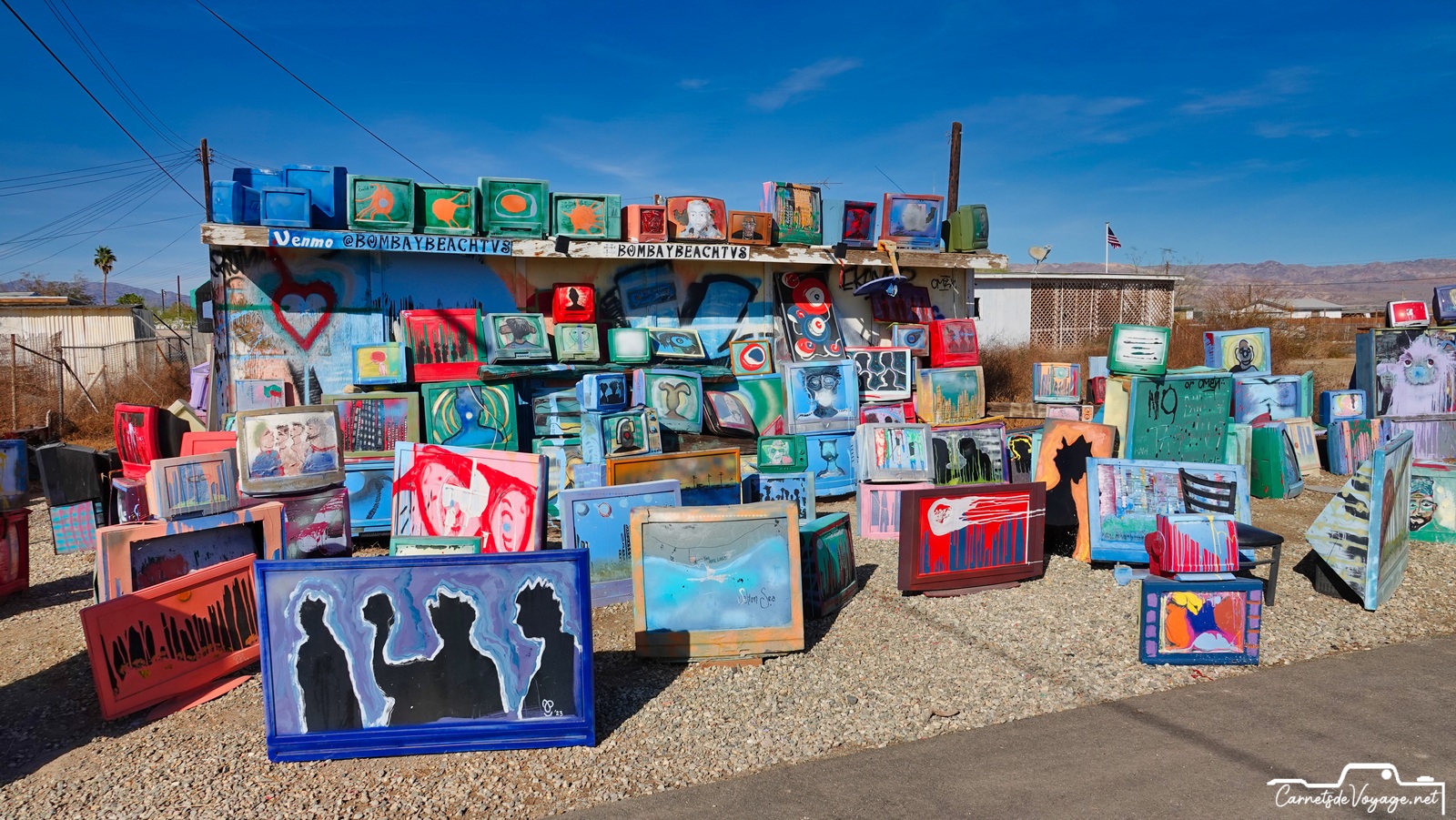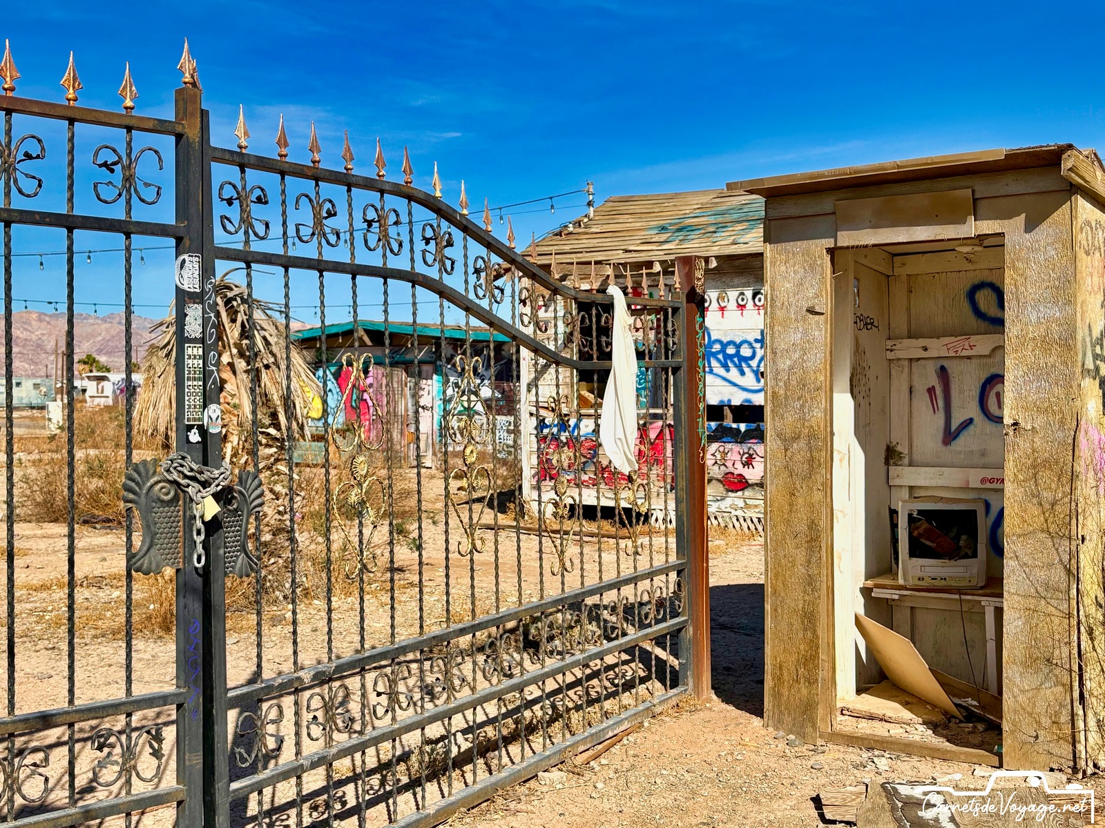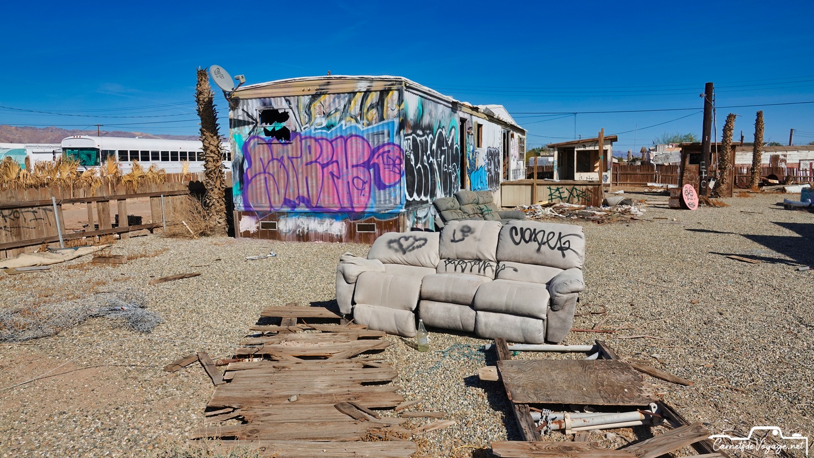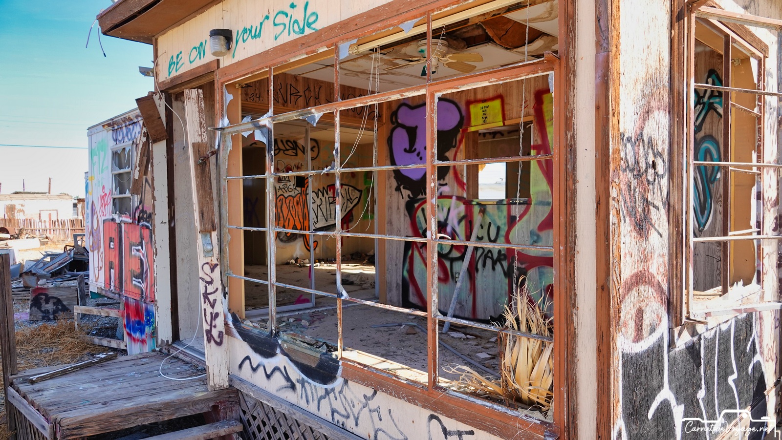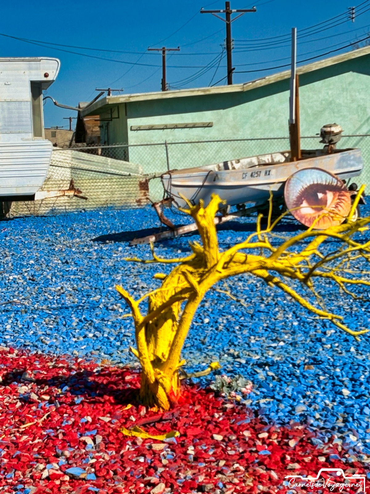 On trouve encore les traces de sa splendeur passée et des publicités qui vantent ses qualités. Bombay Beach était un des plus beaux coins de la Salton Sea. Difficile d’imaginer aujourd’hui qu’on se baignait et qu’on faisait du ski nautique ici !