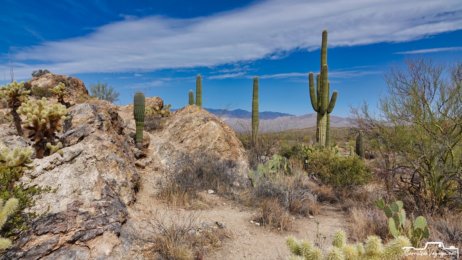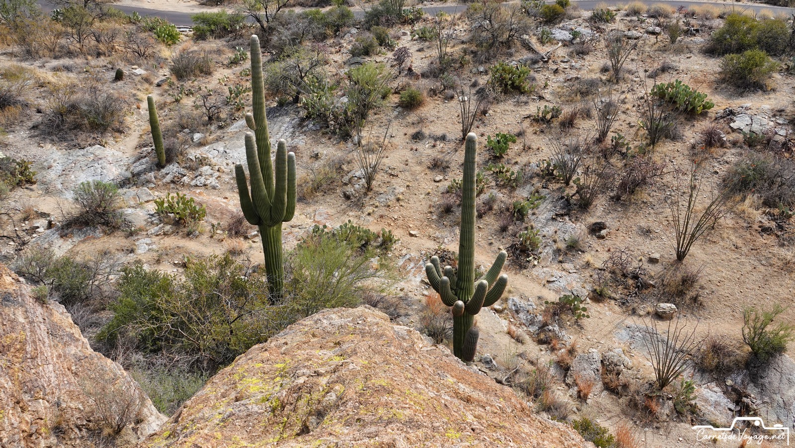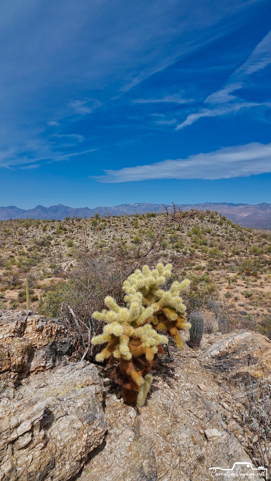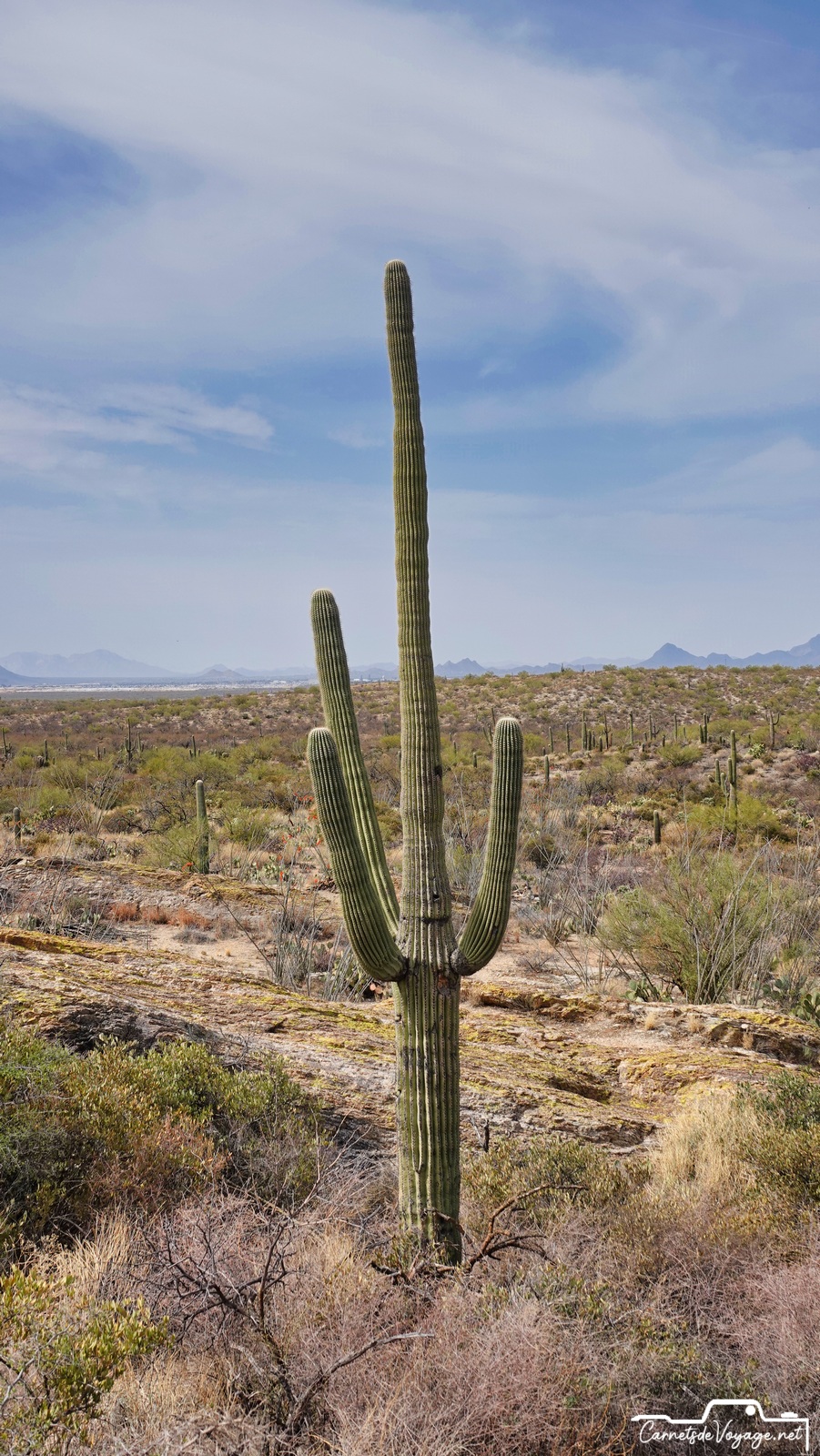 Après Saguaros West hier, on est partis aujourd’hui vers la partie est, la plus belle ! Plus vallonnée, des rochers, des Saguaros par milliers, on a rechargé nos batteries solaires pour affronter dès lundi le prévisible magnifique temps parisien…