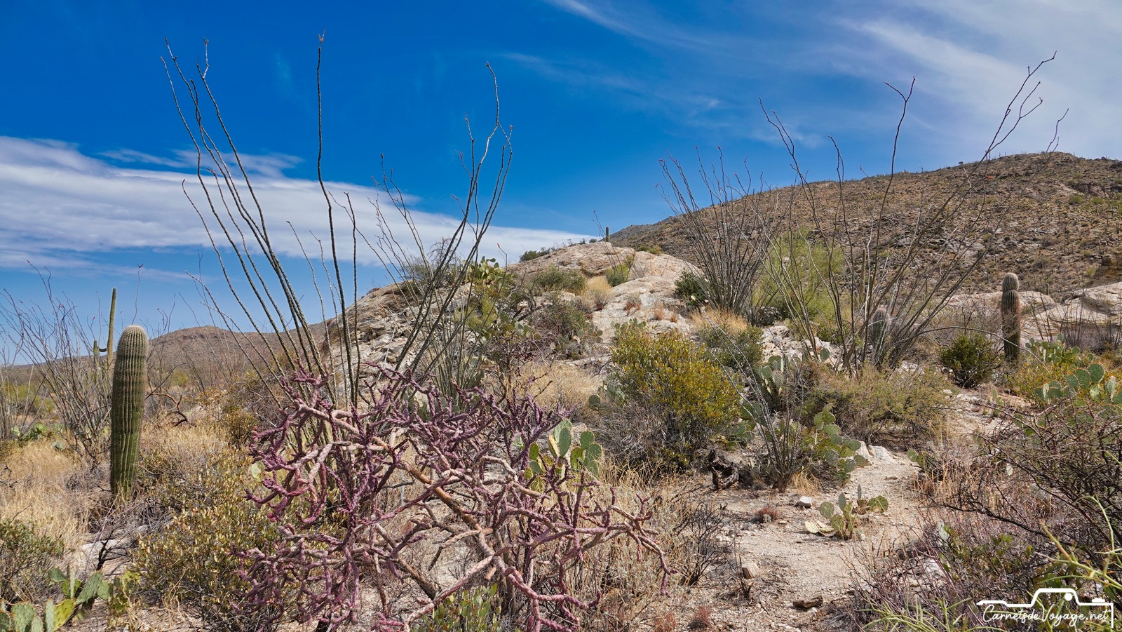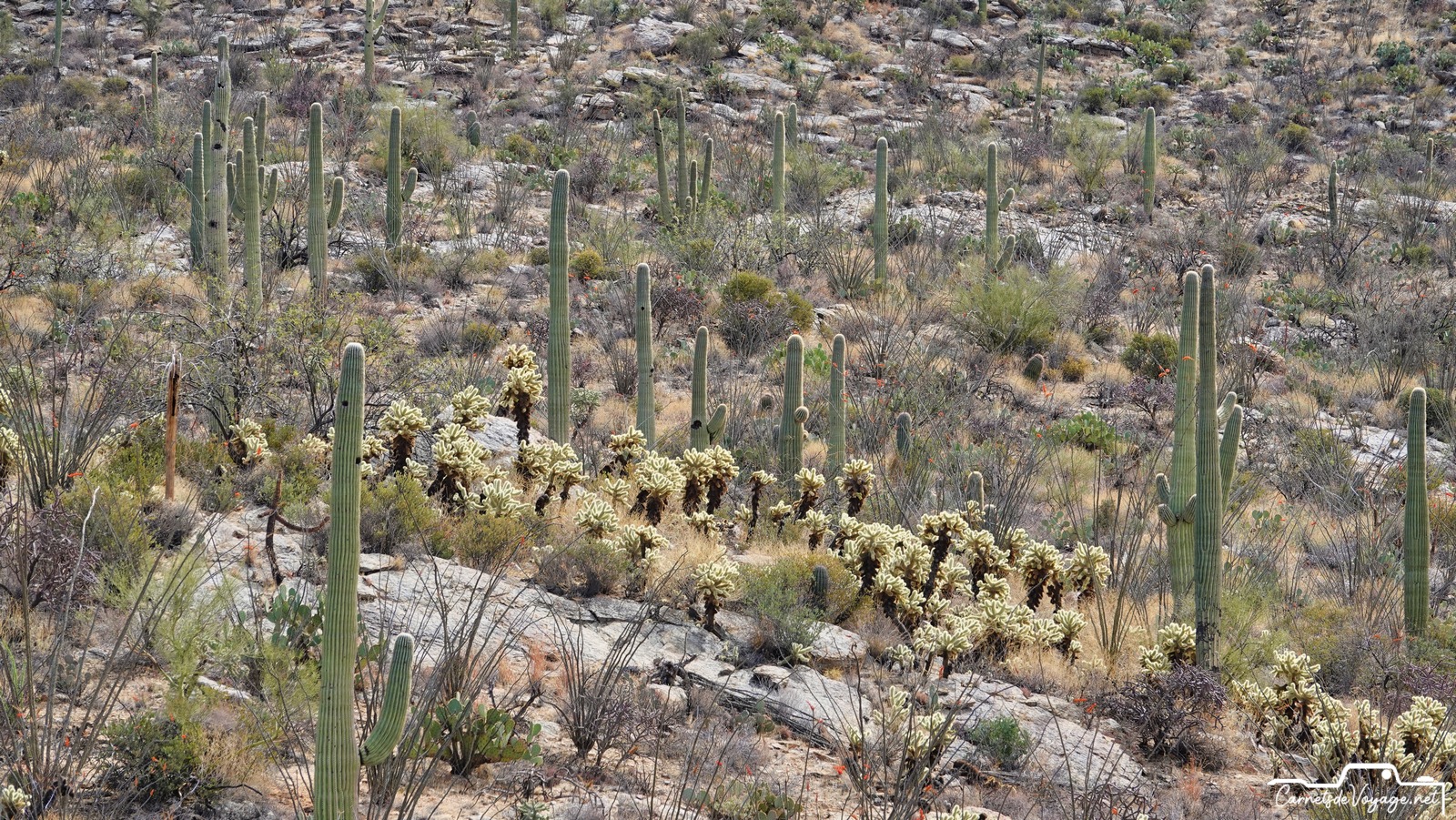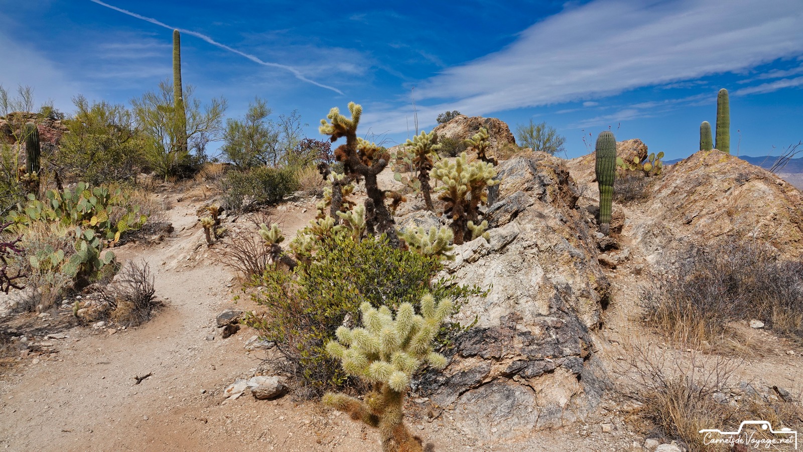 Après Saguaros West hier, on est partis aujourd’hui vers la partie est, la plus belle ! Plus vallonnée, des rochers, des Saguaros par milliers, on a rechargé nos batteries solaires pour affronter dès lundi le prévisible magnifique temps parisien…