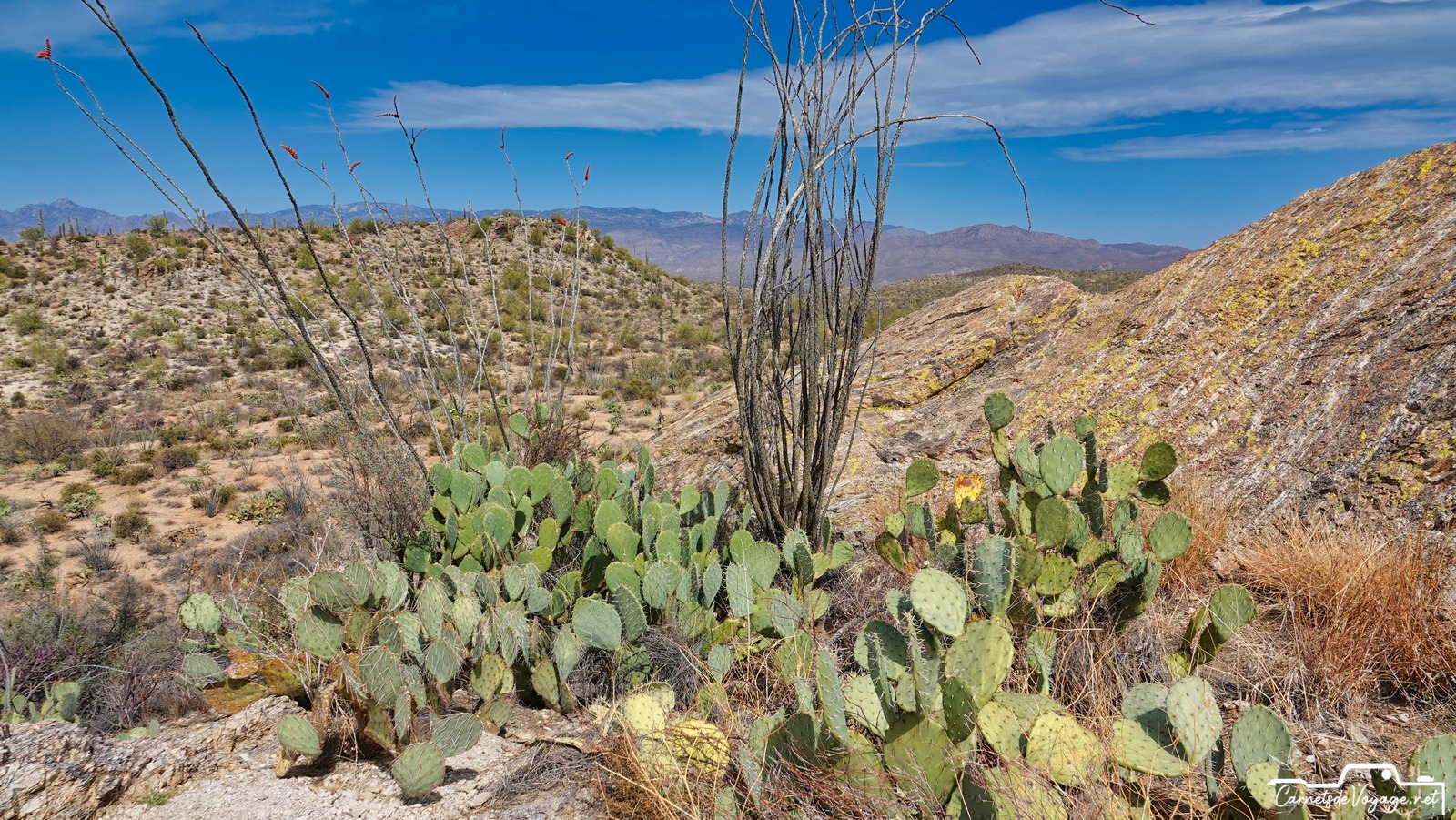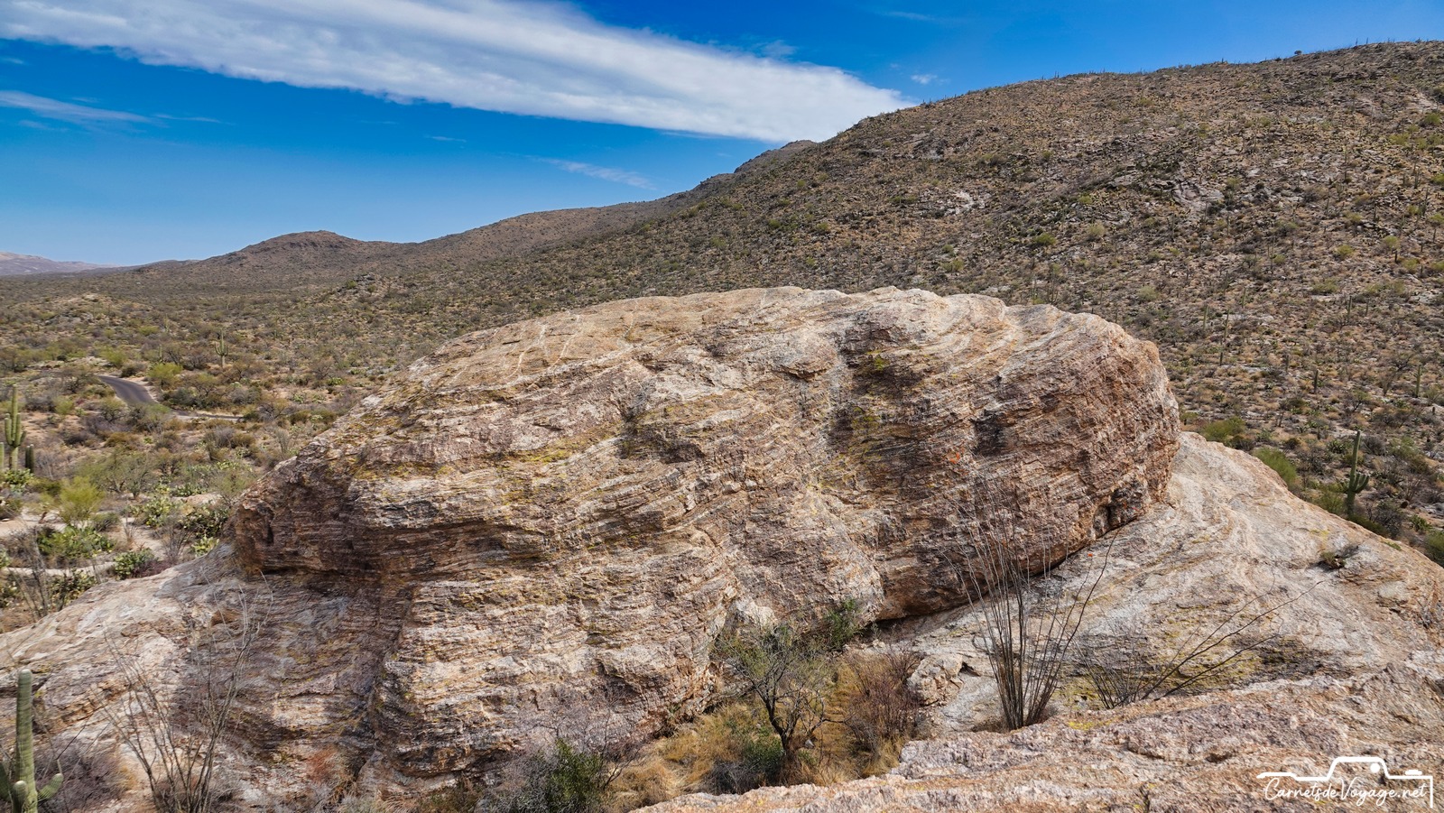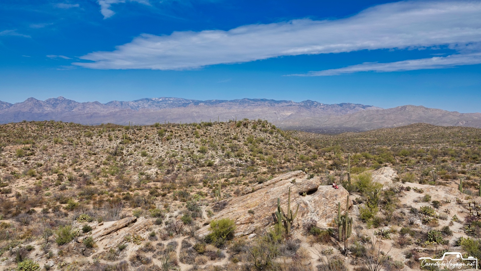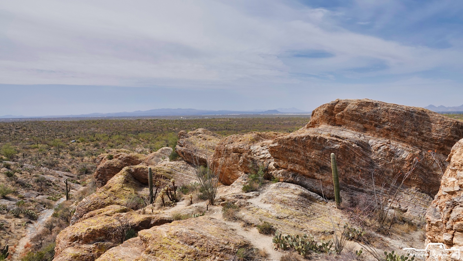 Après Saguaros West hier, on est partis aujourd’hui vers la partie est, la plus belle ! Plus vallonnée, des rochers, des Saguaros par milliers, on a rechargé nos batteries solaires pour affronter dès lundi le prévisible magnifique temps parisien…